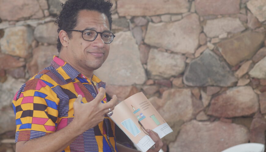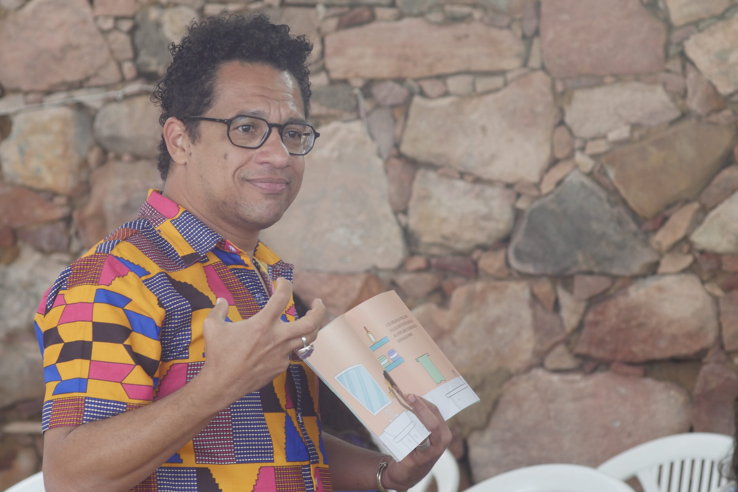 No domingo, as crianças ainda puderam ouvir Marcos Cajé contando sobre histórias de literatura afrofantástica, do seu livro “Themba: o menino rei”.