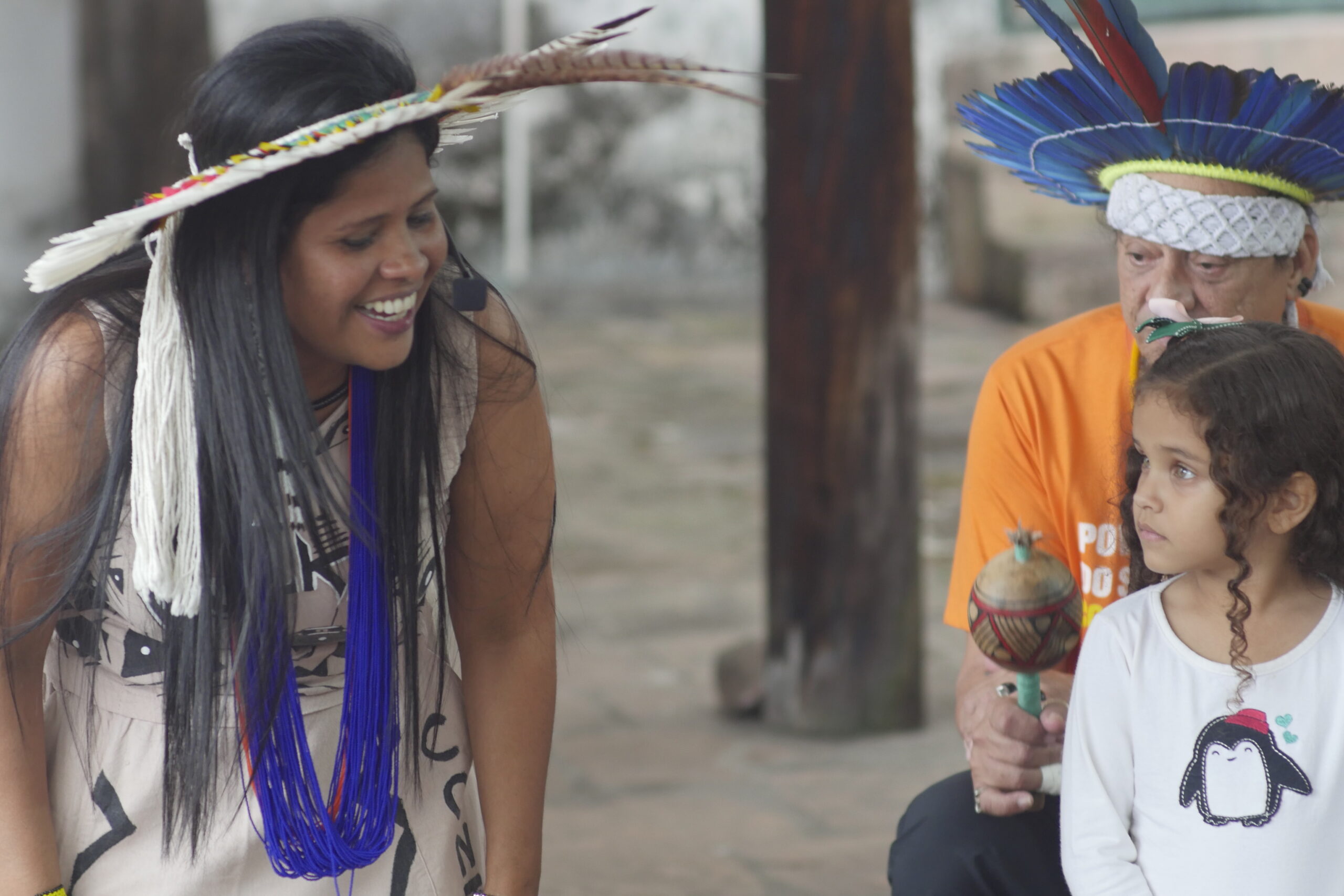 Durante o evento, a escritora narrou uma história sobre “A cura do mundo – povos da floresta” e sorteou adereços artesanais indígenas e também o seu livro “Kariri Xocó – Contos Indígenas” para crianças que acertassem perguntas relacionadas ao conto. Além disso, Denízia também ensinou ao público infantil e adulto canções e danças dos povos originários. “Tudo isso que eu faço aqui é para transformar, para reflorestar, decolonizar, e eu me sinto muito orgulhosa de ver todos vocês aqui”, afirmou a escritora.