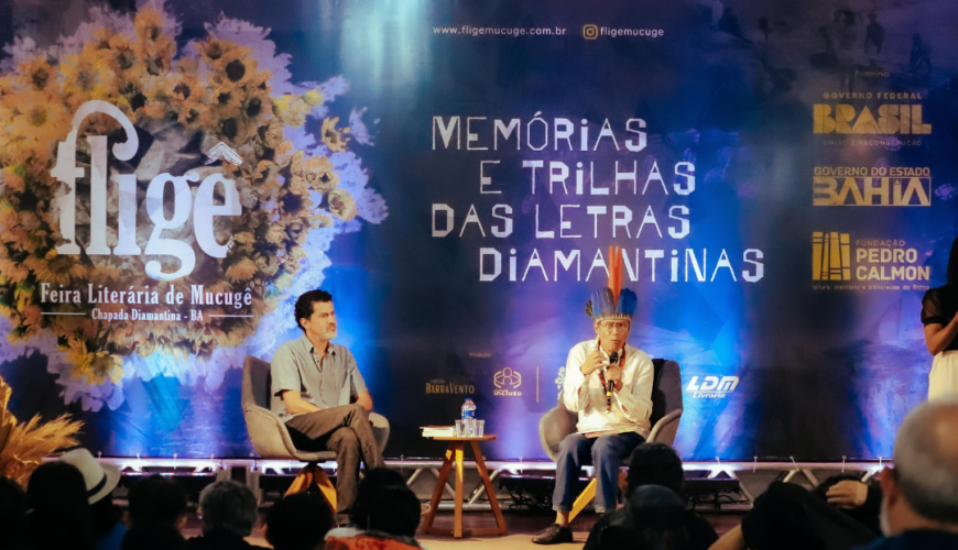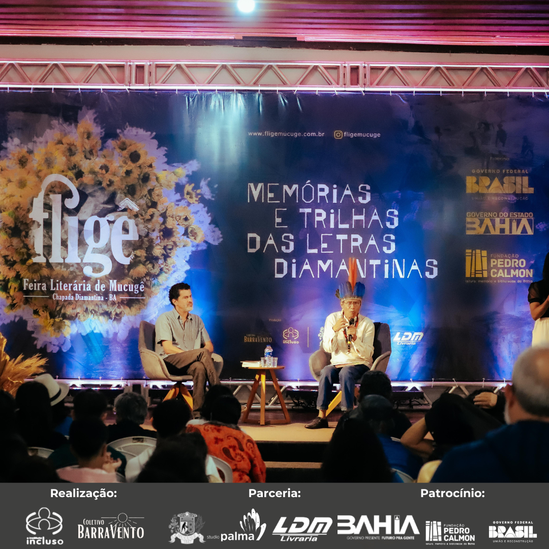 O terceiro dia da Fligê contou com a programação da Rota da Palavra com o tema “Retomada da Terra e da Palavra: Juvenal Payayá  e a literatura de autoria indígena na Chapada Diamantina”. O evento foi realizado na manhã de sexta-feira (26) e teve a participação do escritor e Cacique do Povo indígena Papayá, Juvenal Papayá e  mediação do produtor cultural  Alan Lobo.
