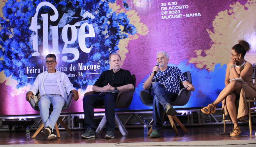 A primeira mesa literária da Fligê aconteceu nesta sexta (18) com o tema “Literatura e Música na Chapada Diamantina”. Os escritores Francisco Lima Cruz Teixeira, Luiz Afonso Costa e Sérgio Siqueira Santos proporcionam um diálogo sobre a influência que as cidades da Chapada Diamantina exercem em suas obras.