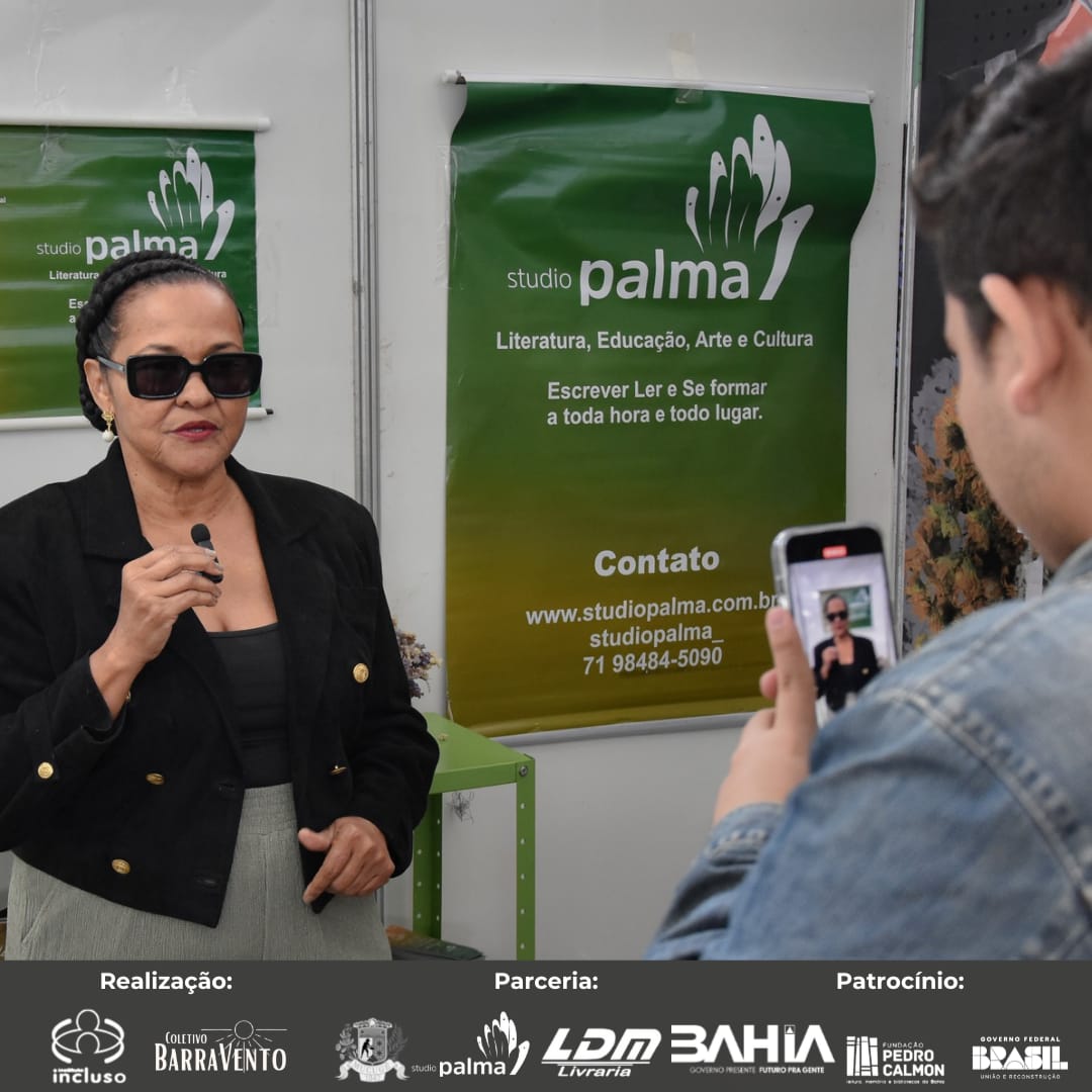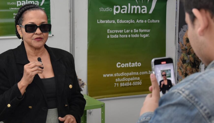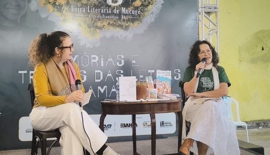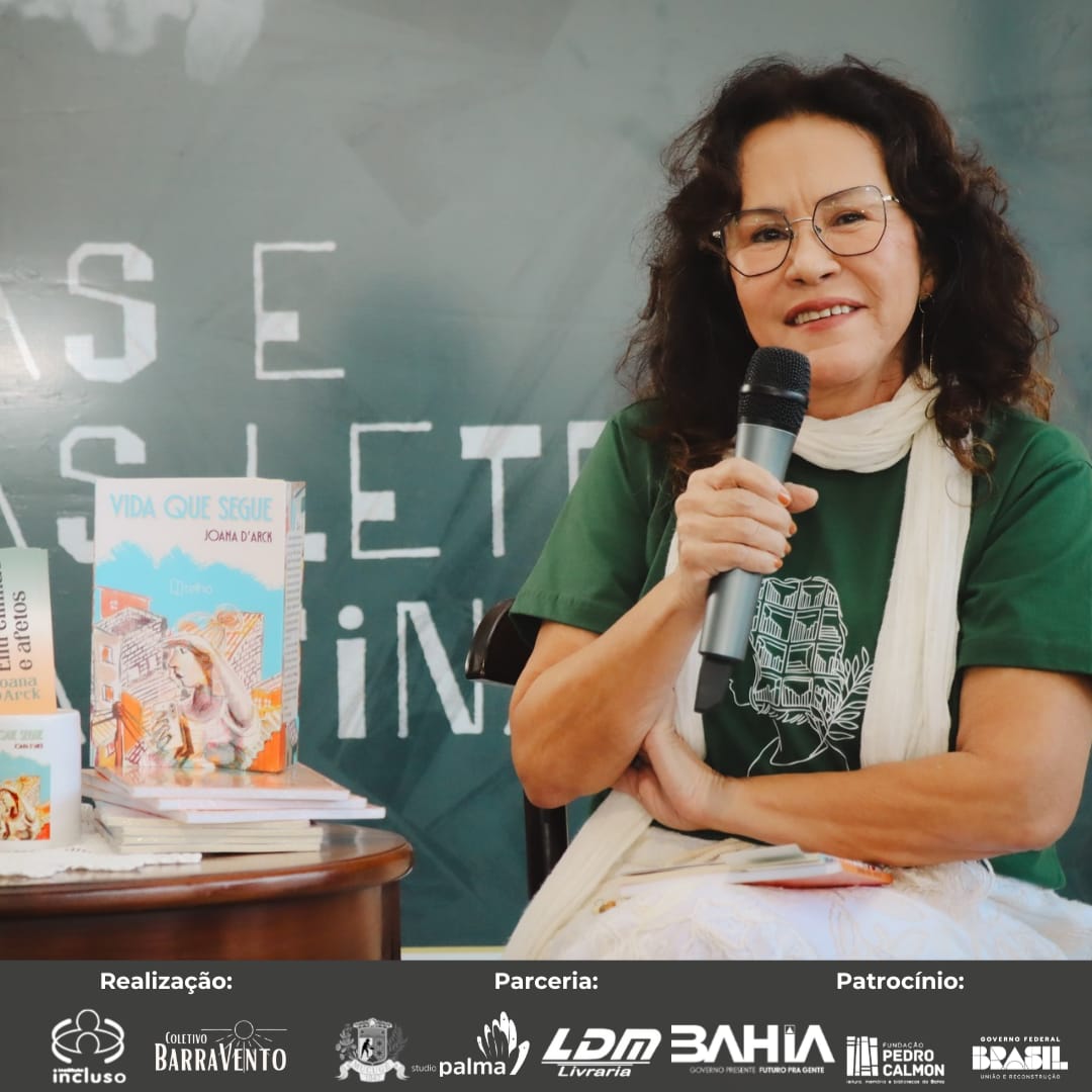 Joana D’Arck, jornalista e escritora, é participante assídua da Feira Literária de Mucugê desde 2016. Em 2024, está lançando o segundo livro na Feira. “Lancei aqui o meu primeiro livro e voltar aqui para lançar o segundo está sendo uma experiência maravilhosa, gostei muito. Temos aqui a oportunidade de conversar com o público e sentir a recepção da obra”.