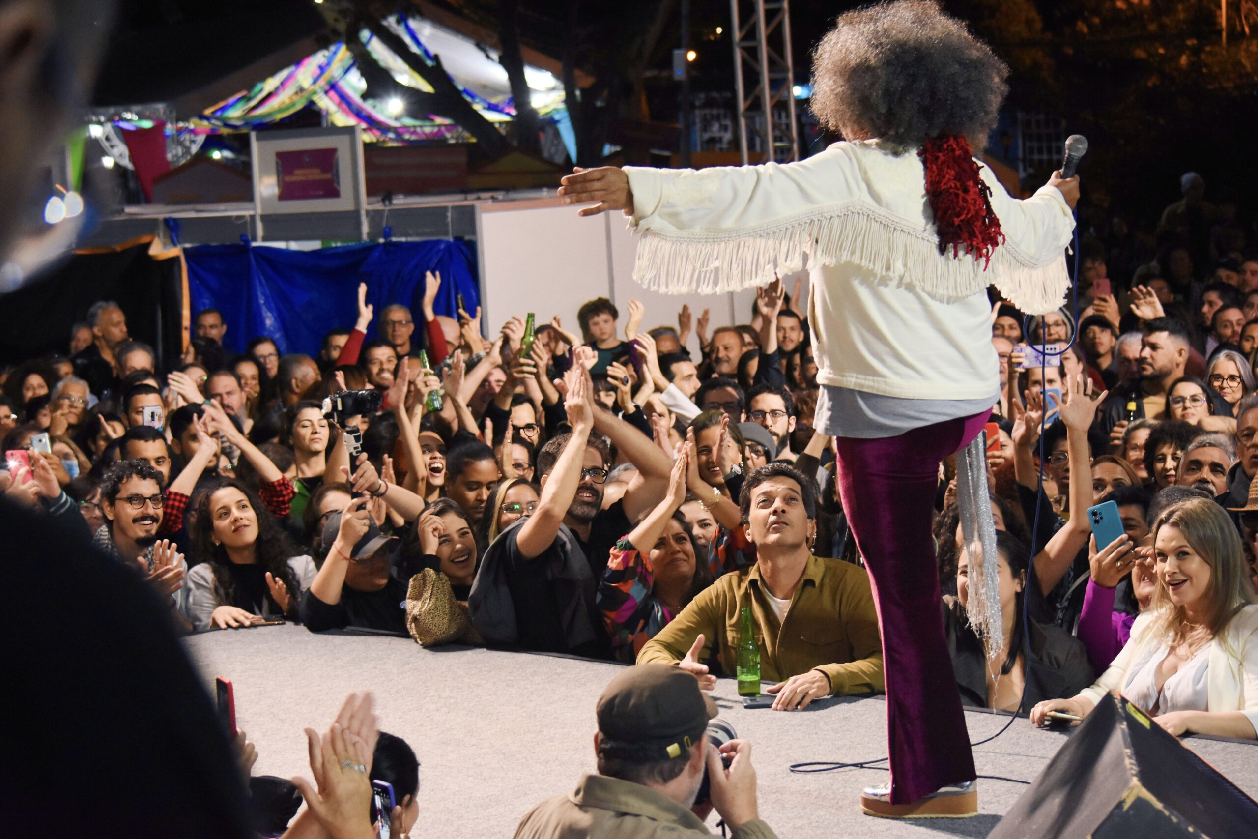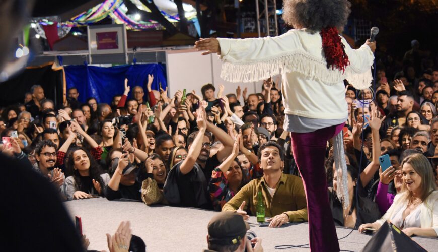 A poesia se espalhou pela Praça dos Garimpeiros e o público empolgado cantou todas as canções. Um show de ritmos nordestinos com uma brasilidade que é muito nossa: baião, maracatu, repente e cordel declamado. Chico César trouxe o show Vestido de Amor para o palco principal da Fligê com a maestria de um grande artista.